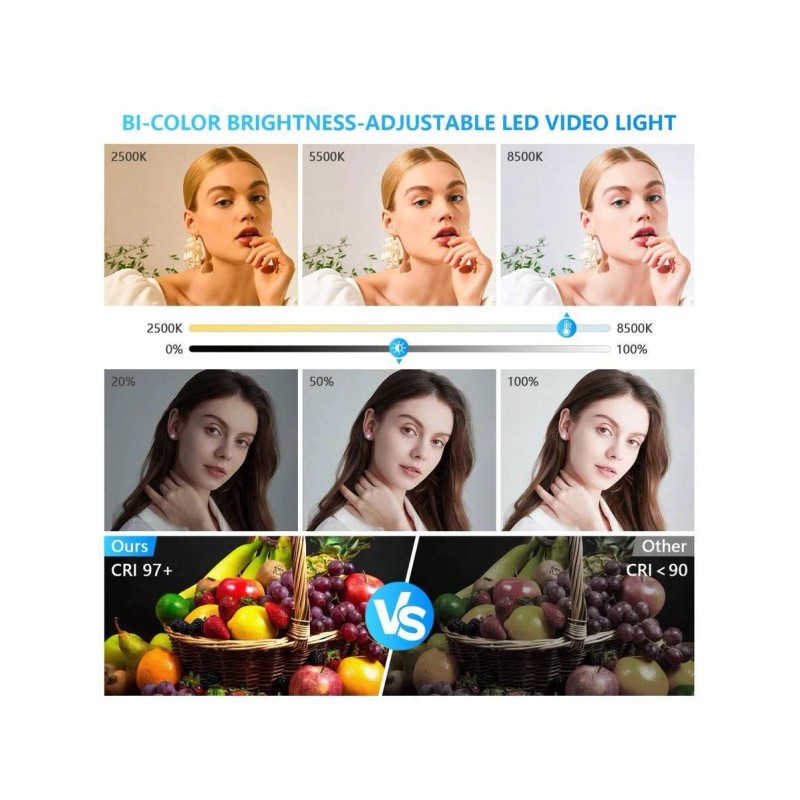 Lighting mode: 3 types of light colors Accessories: Bracket, Windshield Flat Light Used for photographing, live broadcast, video call, etc 130cm adjustable triangular bracket Easy to install, detachable, lightweight