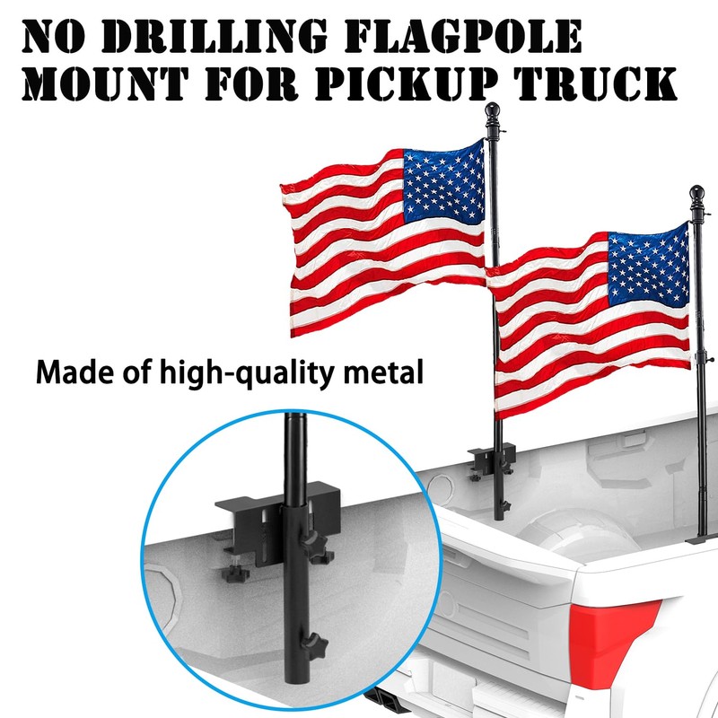 - Universal Truck Bed Rail Side Mount Flag Holder Kit