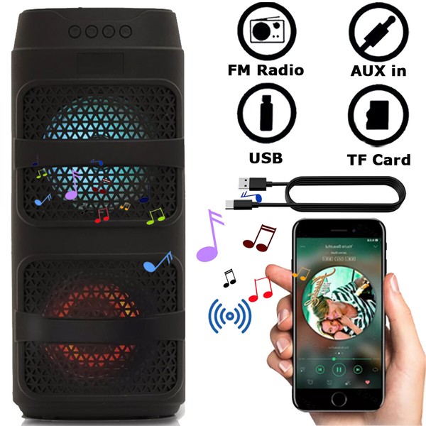 Universal Portable Bluetooth Speaker Dual 4'' Subwoofer Heavy Bass Stereo Sound Party TWS