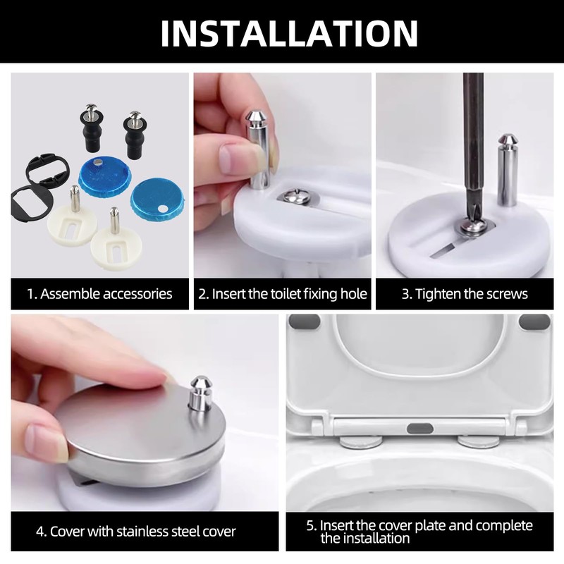 - Effortless Installation Process: Simplify your toilet seat setup with our quick-release fixings that require no additional tools. Insert the rubber grommets into the toilet's mounting holes, tighten the screws, and the unique design automatically expands for a secure fit, saving you time and effort.