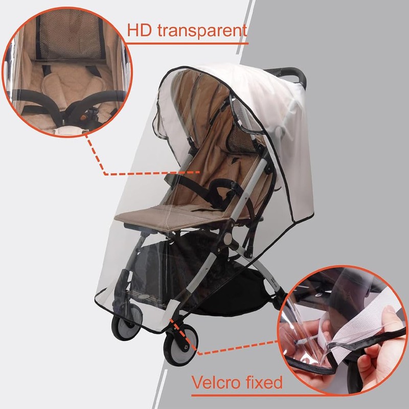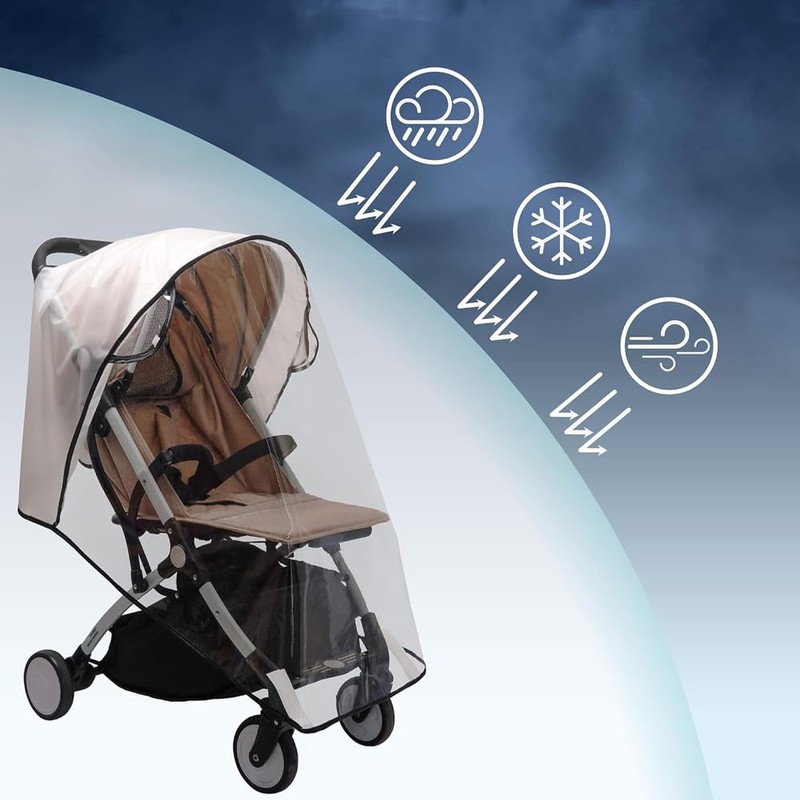 - 【ESSENTIALS STROLLER ACCESSORIES】 Plastic stroller cover for rain is a must-have baby travel accessory for parents to travel with their babies and give them the best protection in a safe environment