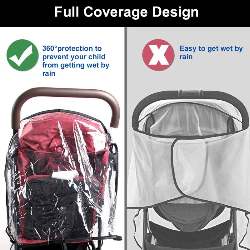 - Buggy pushchair rain cover: The rain cover for pushchairs protects your baby from rain, wind, snow, cold and dust, providing you with the best protection when you are out and about with your baby. It protects your baby from wind and weather and flying insects.