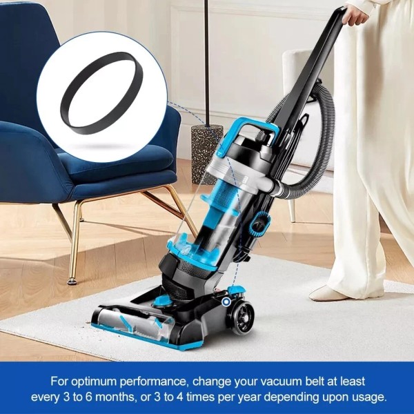 For optimum performance, change your vacuum belt at least every 6-12 months, or 3 to 4 times per year depending upon usage.