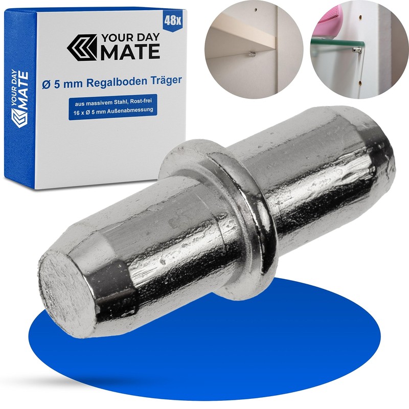 - D5 board holder pins for furniture made of glass, metal, wood, PVC, chipboard. Do you want to insert additional shelves in your workshop shelves? Then use these 5 mm diameter shelf supports to attach your shelves firmly and securely.