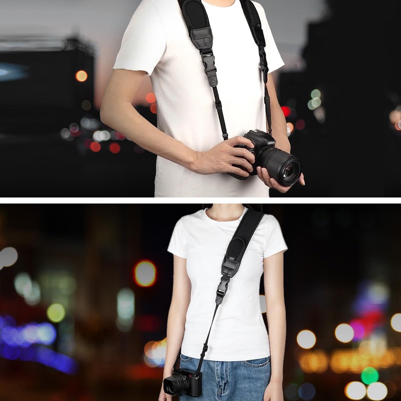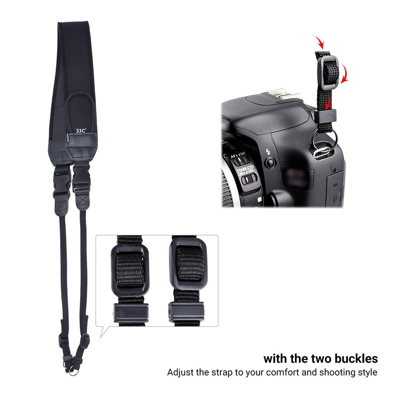 - 【Adjustable Length Flexibly & Quick-Release】:with the two buckles on the strap, you can quickly adjust the strap to your comfort and shooting style. And the shoulder strap has two quick-release clips allowing you to remove the neck strap easily when not in use.