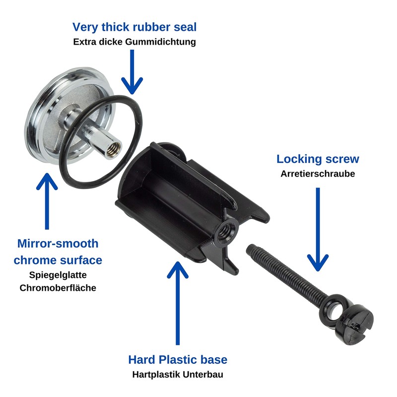 • Replaces any standard 40 mm diameter sink plug in Germany. Elegant chrome-plated brass combined with high-quality ABS hard plastic create the perfect rust-free sink drain plug for drains with a diameter of 40 mm