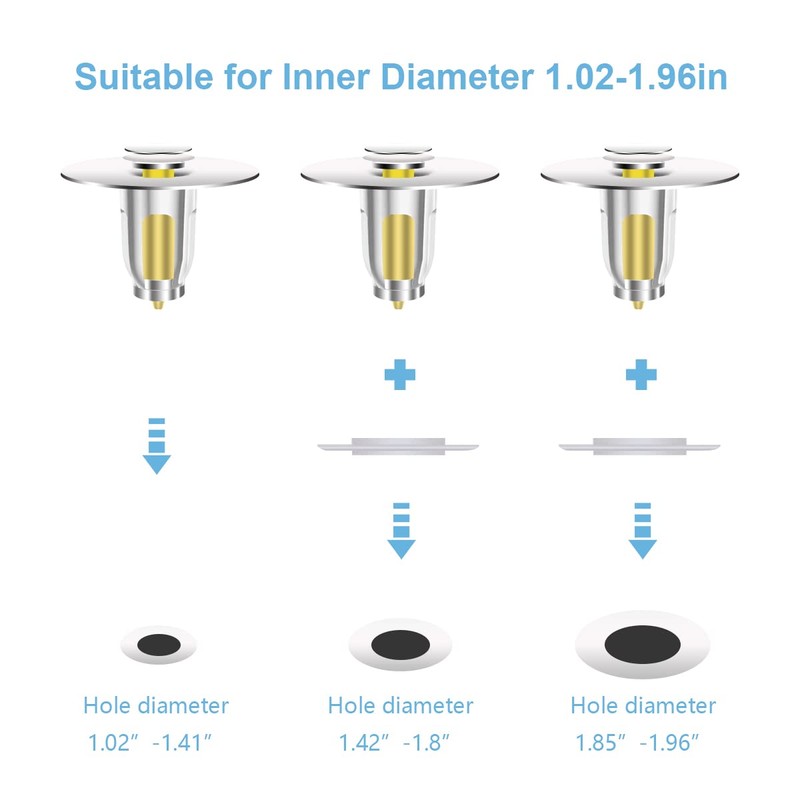 - Perfect compatibility: plug sink can be used on most EU standard drainage holes with an inner diameter of 1.02 inches - 1.96 inches/26 mm - 48 mm. Equipped with 3 silicone rings to fit different sizes of drainage holes. Warm tip: please check your drain hole before purchasing.