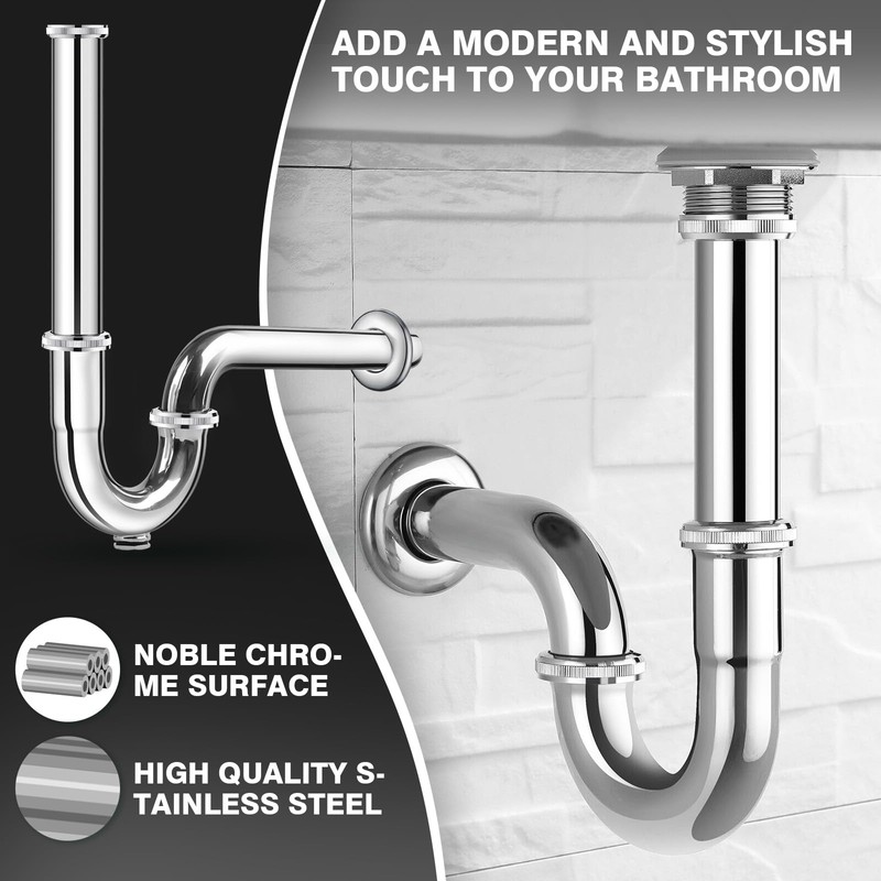 - UNIVERSAL FIT: High quality siphon set with pop-up drain fitting fits most standard sinks and vanities