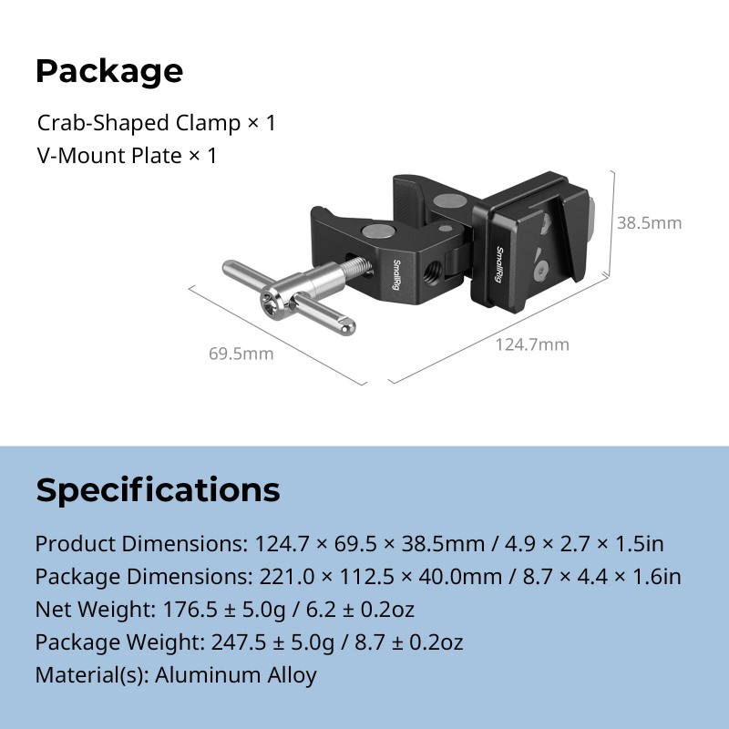 Universal SmallRig V Mount Crab-Shaped Clamp 1.5kg Load for V-Mount Batteries