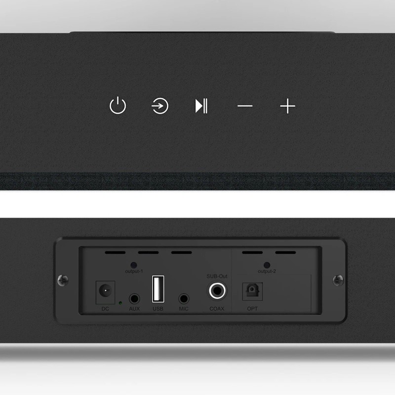 Connection ports: DC input port, AUX input port, USB connection port, MIC port, coaxial port, OPT port, HDMI audio input port