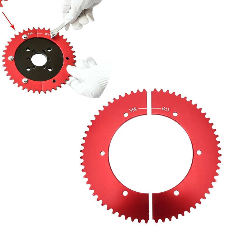 - EASY ADJUSTMENT OF GEAR RATIO - The 35 chain 64 tooth split sprocket allows easy observation and adjustment of gear ratio without the need to remove the axle. This function makes it easier to replace and install the gearbox, improving your driving experience.