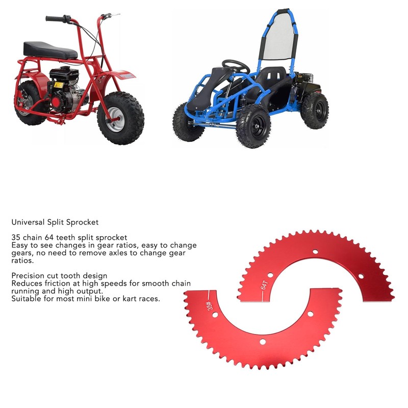 - PACKAGE CONTENT: The package contains a split mini sprocket (35 chains, 64 teeth) and provides a complete solution to increase the performance of your go-kart or mini bike. Equip your vehicle with this essential component for an improved driving experience.