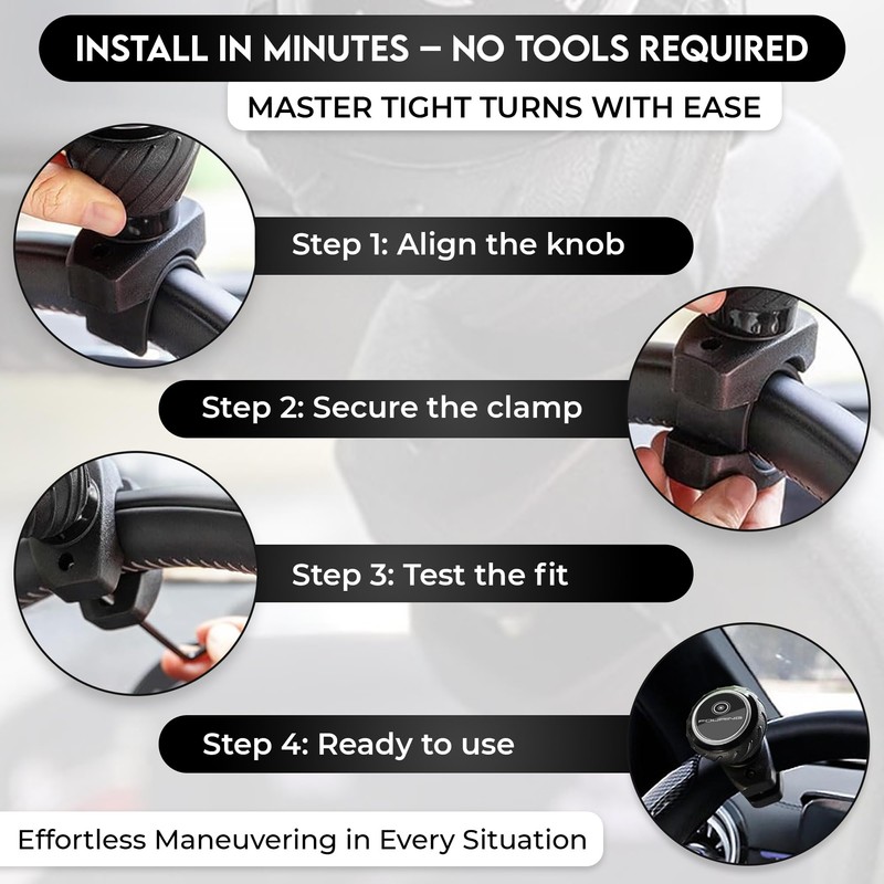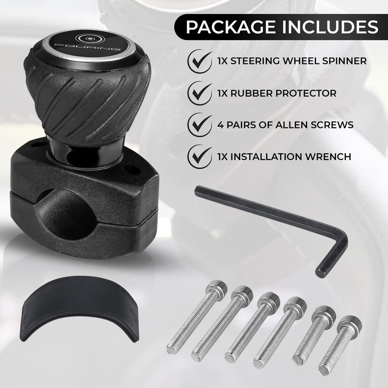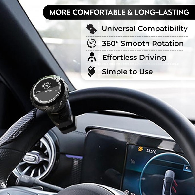 FOURING Universal Steering Wheel Spinner Knob - Smooth Black Finish | Fits Steering Wheels 0.5"-1.75" Diameter | Effortless Spinning for Cars, Trucks, Tractors, Boats, Semi-Trucks, Forklift & More
