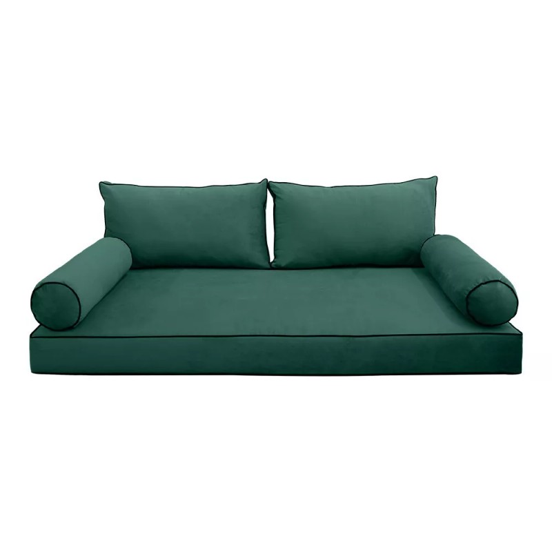 - Style-V2 Velvet Contrast Pipe Trim Indoor Daybed Mattress Bolster & Back Pillow Cover Set