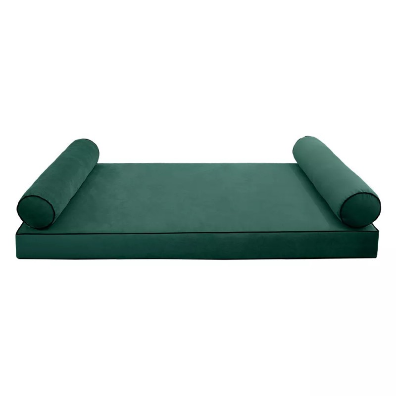 - Style-V5 Velvet Contrast Pipe Trim Indoor Daybed Mattress Bolster & Back Pillow Cover Set