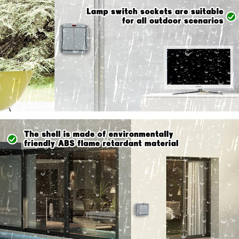 - Wide application: waterproof switch is suitable for all outdoor scenes, can be used in balcony, bathroom, lawn, garden, outdoor workshop, basement, laundry room, garage, parking lot, etc.