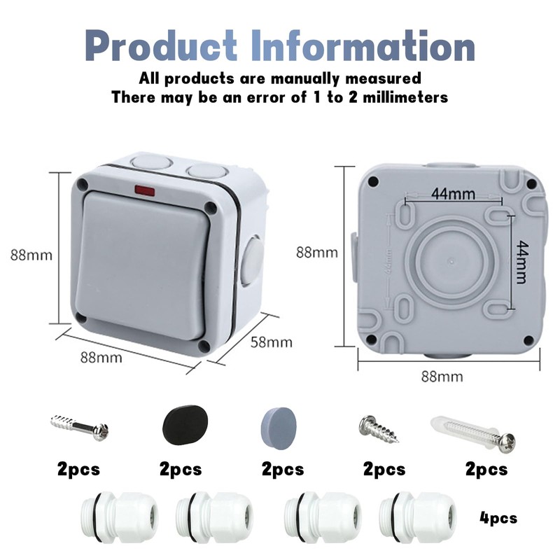 - Easy to install: weatherproof switch light switch IP65 is easy to install, the mounting screws are hidden under the housing, the cable entry is blind on all four sides, just plug in the cable, the rainproof light switch comes with removable and reusable mounting holes, no need to cut a slot in the wall to place the cable