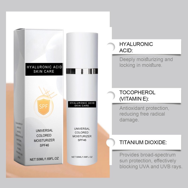 Universal Tinted Moisturizer with SPF 46 and Broad Spectrum Protection - All-in-One Sunscreen, Foundation, and Concealer for Full Coverage and Invisible Pores - 50ml