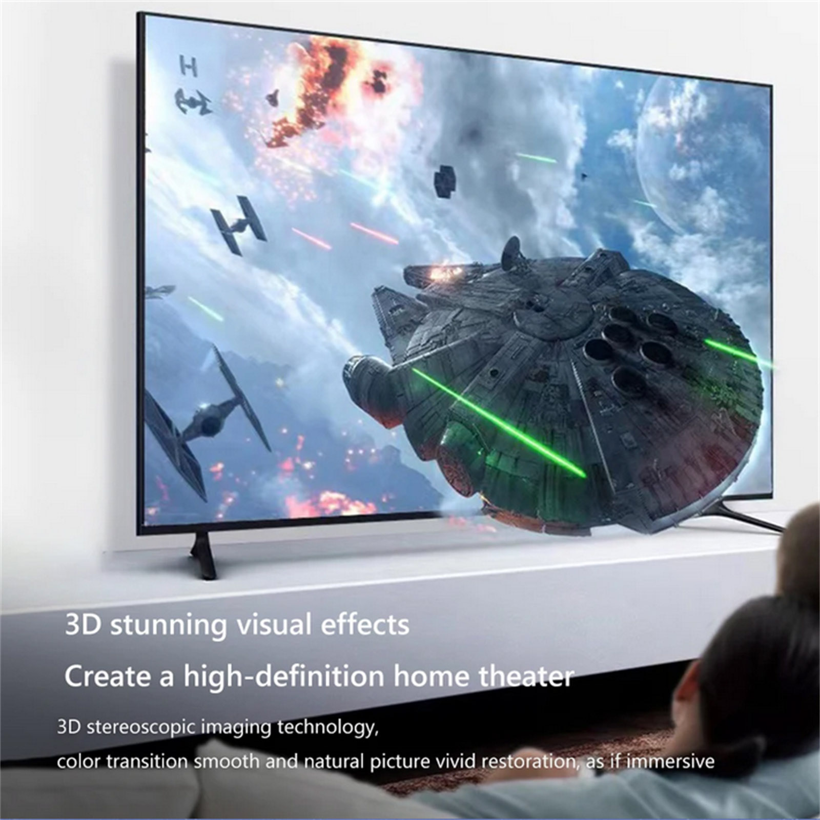 2. Stunning 3D Visual Effects: Create a high-definition home theater with 3D imaging technology. Smooth and natural color transitions provide vivid and lifelike images that transport you into the scene