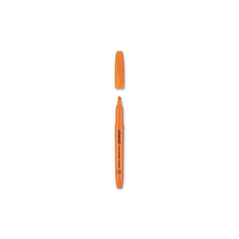 Universal UNV08853 Chisel Tip Fluorescent Orange Ink Orange Barrel Pocket Highlighters (1 Dozen)