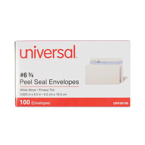 Universal UNV36106 3.63 in. x 6.5 in. #6-3/4 Square Flap Peel Seal Envelope - White (100/Box)