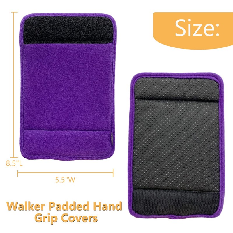 Universal Walker Padded Hand Grip Covers, Premium Medical Soft Cushion Memory Foam Core Padding, Wicking, Comfort, Washable, Purple