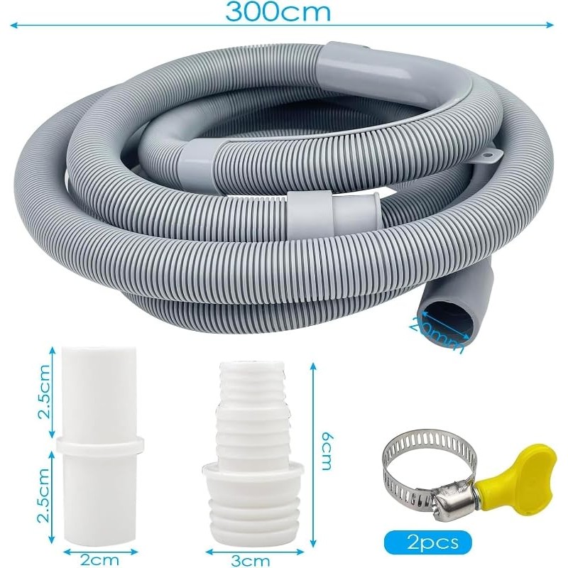 • [Dimension]: the whole drain hose length measures 1.5 meters/ 5 feet for universal roller machine with inner diameter 30 mm/ 1.2 inch connector; The white adapter has a diameter of 21 mm/ 0.8 inch and is suitable for most water pipes that are directly 20 mm inside, fitted with 18-32 mm clamps for a stronger connection