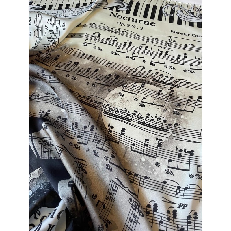 Elevate your style with our Square Music Scarf, an exquisite homage to Frederic Chopin’s iconic Nocturne Op. 9 No. 2. This scarf has a smooth, glossy finish that drapes effortlessly and offers a delightfully soft feel against the skin.