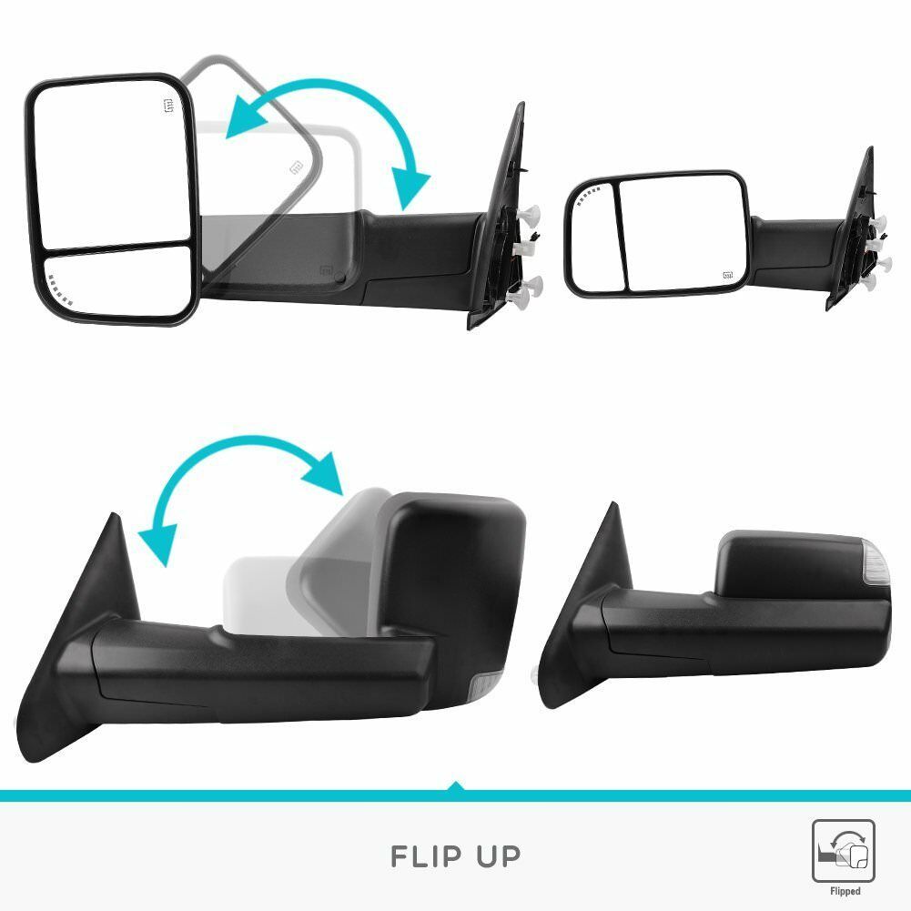 Universeparts Tow Mirrors Power Heated Flip Up for 02-08 Dodge 1500 03-09 2500 3500 Truck