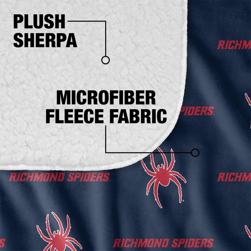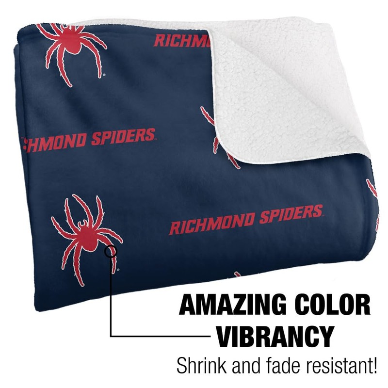 University of Richmond Blanket, 50"x60" Logo Pattern Silky Touch Sherpa Back Super Soft Throw Blanket