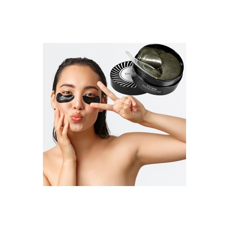 🌟 ⭐ UNIVERSOENLINEA.COM 60 Parches Contorno Ojos Hidrogel Ojeras Bolsas de Agua Arrugas Lineas de Exprecion Hidratantes Acido Hialuronico Colageno Mascarilla Cuidado Facial Perlas Negras y 24k Golden Eye Mask (Negro / Perlas Negras) ⭐ 🌟