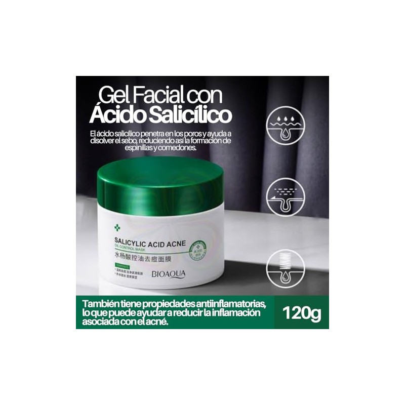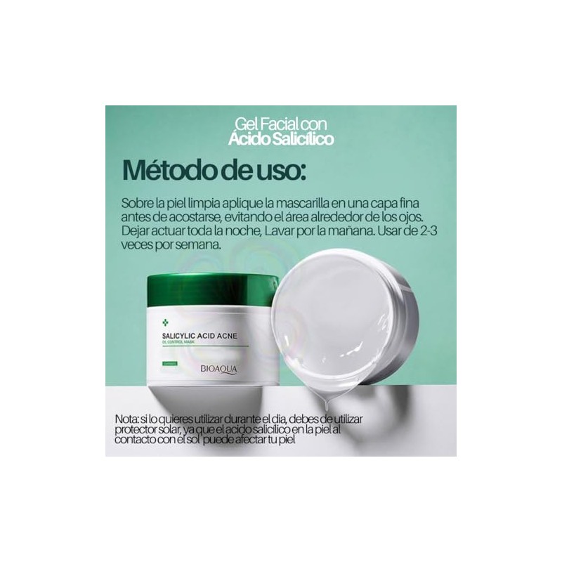 🌟 ⭐ UNIVERSOENLÍNEA.COM | Gel Cuidado Facial Acido Salicilico Oil Control Mask Mascarilla Control Acne Elimina Granos Espinillas Exfoliante Acido Salicilico Elimina Imporesas ⭐ 🌟