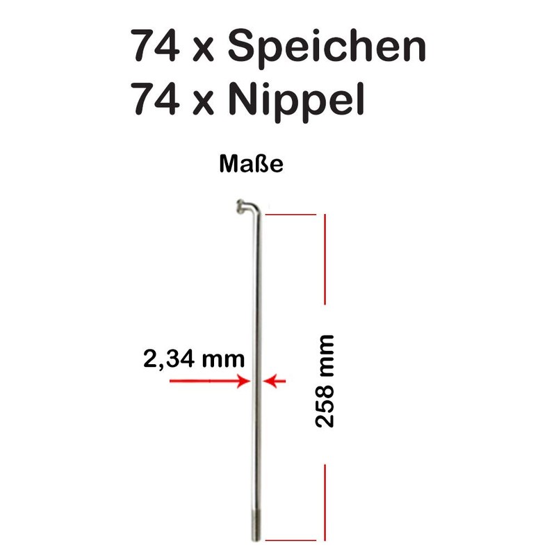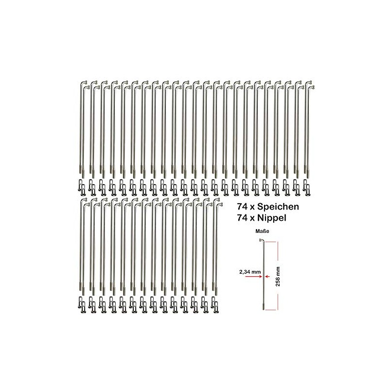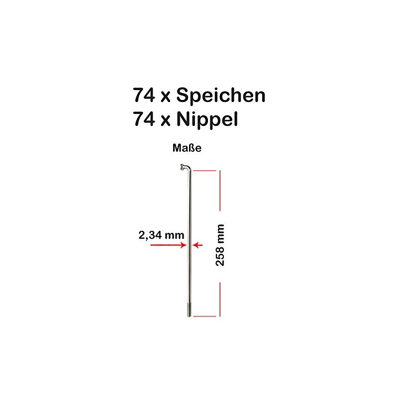 74 high-quality and reliable Nirosta spokes, ideal for electric bikes or loads, post and XXL bicycles.