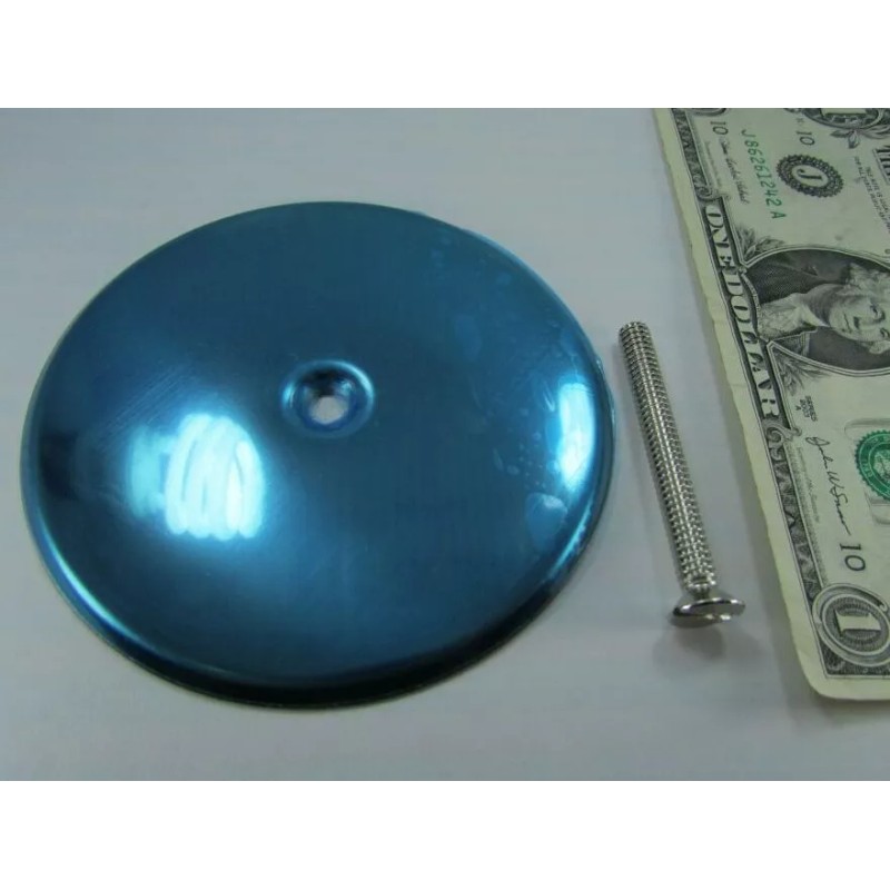 These were acquired at a lost freight auction recently, and they are brand new in the original factory packages. Not sure exactly what these were designed to cover; possibly a urinal valve, or other plumbing or electrical items. The mirror-polished chrome face is covered with a blue protective film to prevent damage, however, the screws are loose in the plastic bags with the covers. In order to keep the screws from scratching the finished surfaces, we placed two covers back-to-back with the screws between them, and then put two pairs (4 pieces) in a heavy Ziplok bag that is tight enough to prevent movement. That way, we can ship them inexpensively, and they should arrive with the polished faces in good order.