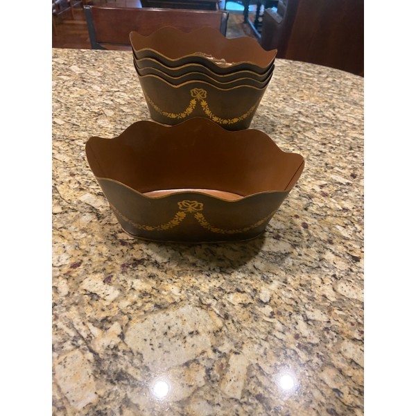 Unknown New Brown & Gold Tole Metal Planter Cache Scalloped Pot Hand Painted