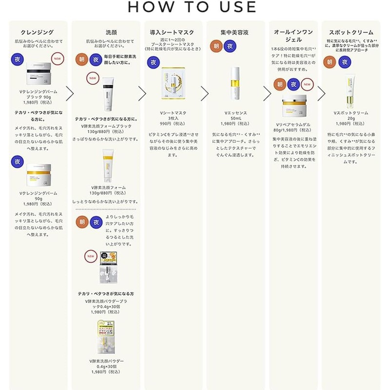 Vitamin C derivators* and active enzyme powder capsule *3 and charcoal*4 & black ingredients *5 dense foam to remove pores and sebum stains.