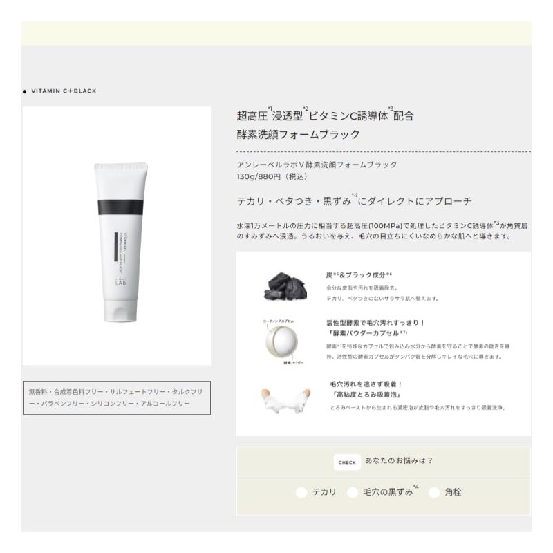 - Black series with charcoal and ultra-high pressure penetrating vitamin C derivatives. 100 MPa super high pressure *1 technology penetrating type *2 enzyme face cleaning foam black 100 MPa vitamin C derivative formula: