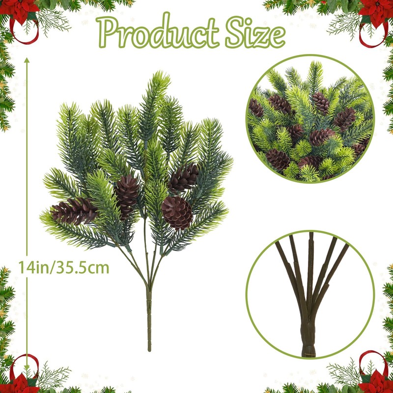 • Sufficient Quantity: Comes with 24 pieces artificial pine branches, each approximately 14 inches long. The generous quantity ensures you have plenty of material to meet all your decorative needs, whether for Christmas day or throughout the holiday season