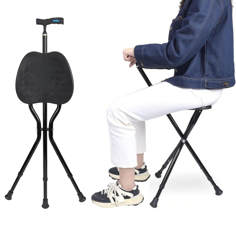 - Compact and easy to fold: Weighing only 2.4 pounds, this walking stick with seat is designed for easy use and features an easy folding mechanism that allows it to be folded into a compact form. The unique three-legged design of the seat improves stability and can be neatly folded, making it easy to carry, perfect for use in the park, hiking, shopping, queuing, outdoor rest, travel.
