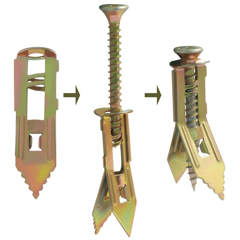 - 【Durable Construction】Made of corrosion-resistant carbon steel with yellow zinc coating. Deep threads and ribbed expansion design ensure high stability, preventing deformation or breakage.