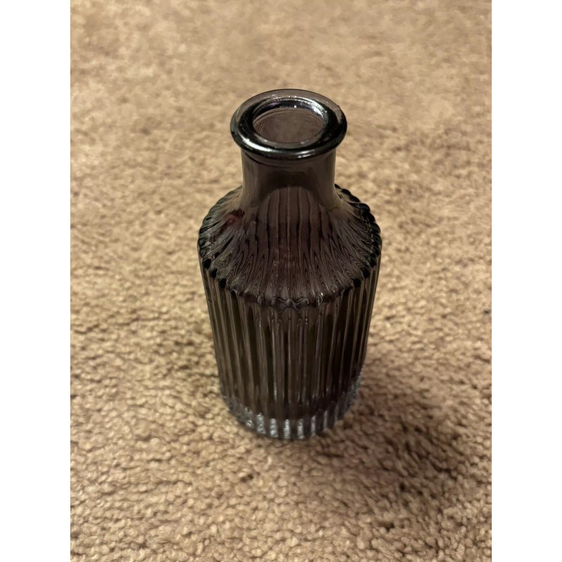 Elegant Grey and Clear Glass Round Bottle, Stripped Design! Mini Vase! Perfect for flower giving or just as a gift in general!