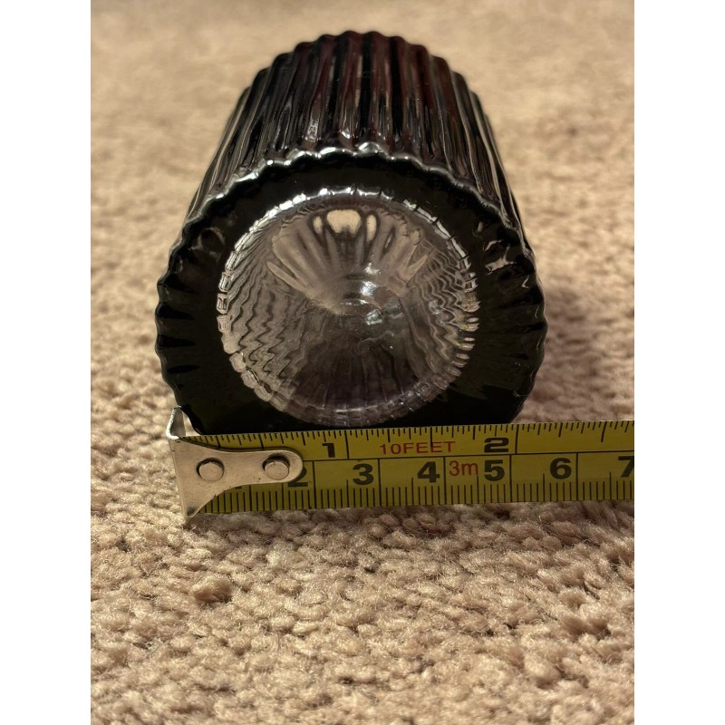 Unmarked Elegant Grey and Clear Glass Round Bottle, Stripped Design! Mini Vase!