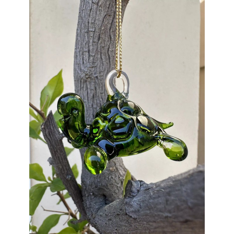 Happy turtle figurine in mesmerizing emerald green tone.