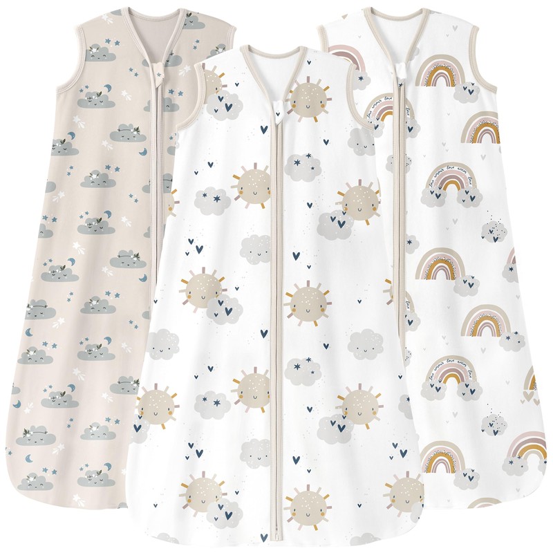 - UNIQUE PATTERN-The 3 pack summer sleep sack printed with cute pattern, which can promote baby's brain and visual development. Multiple studies have shown that soft, warm colors can relax and help babies fall asleep faster. We always design on the perspective of yours!