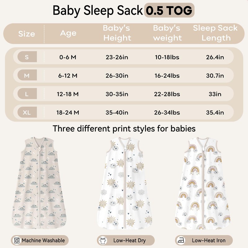 - EASY DIAPERING-2 way zipper runs from the top to the bottom, making the lightweight sleep sack much convenient to change diapers without any interruption, especially during midnight. Equipped with zippe guard prevent rubbing on your baby's sensitive skin and protects baby's chin. Tog rating 0.5, making it perfect for nursery room temperature 75°F above.