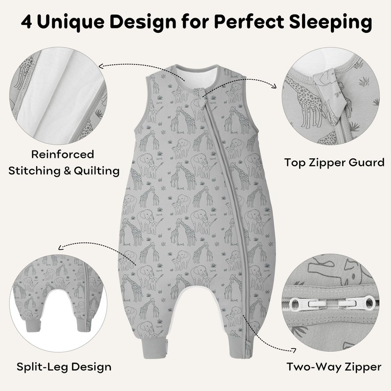 - SMOOTH TWO WAY ZIPPER The two-way zipper is easy to put on and take off, and the bottom snap button design is convenient for changing diapers and does not affect baby's sleep. The high-quality zip is smooth and does not get stuck even after repeated use. The zip protection of the baby sleeping bag protects your baby's chin from scratches.
