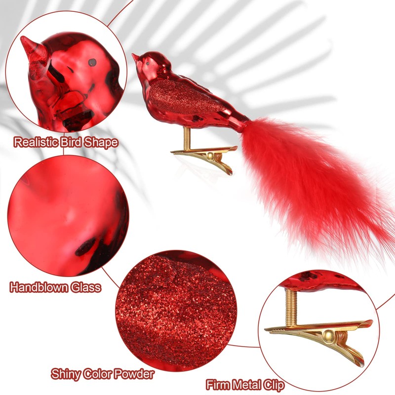- Merry Christmas: Cute and realistic artificial Christmas tree decoration birds with feather clip, very beautiful and attractive. Classic red goes well with the theme of Christmas. It is an ideal decoration choice for Christmas trees and will definitely bring Christmas atmosphere to your home.