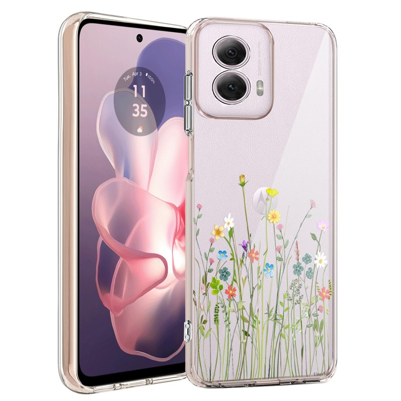 Unov Case Compatible with Motolora Moto g Power 5G 2024 Case Clear with Flower Floral Bouquet Girly Design Embossed Flower Pattern Soft TPU Bumper Slim Protective