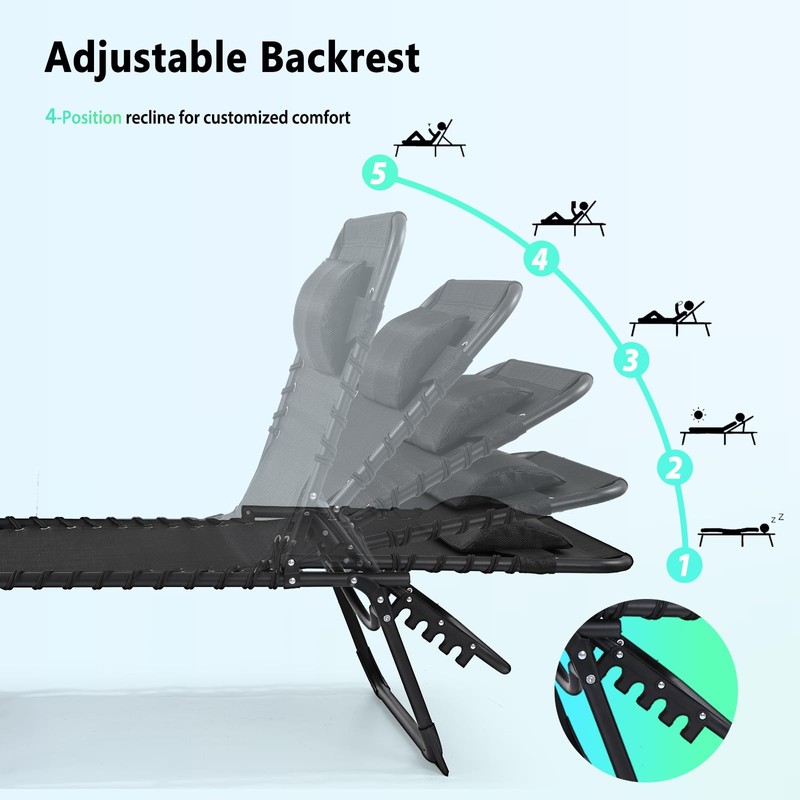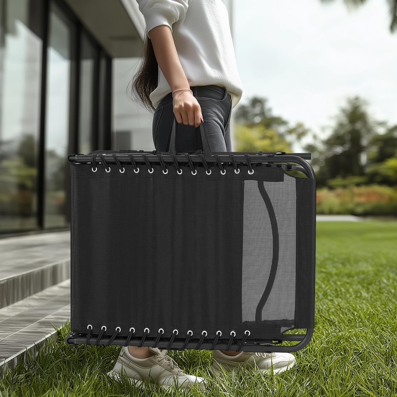 - 【Hassle-Free Setup】 No complicated assembly—just unfold this black sun tanning chair and relax by the pool, at the beach, on your patio, or even while camping under the stars