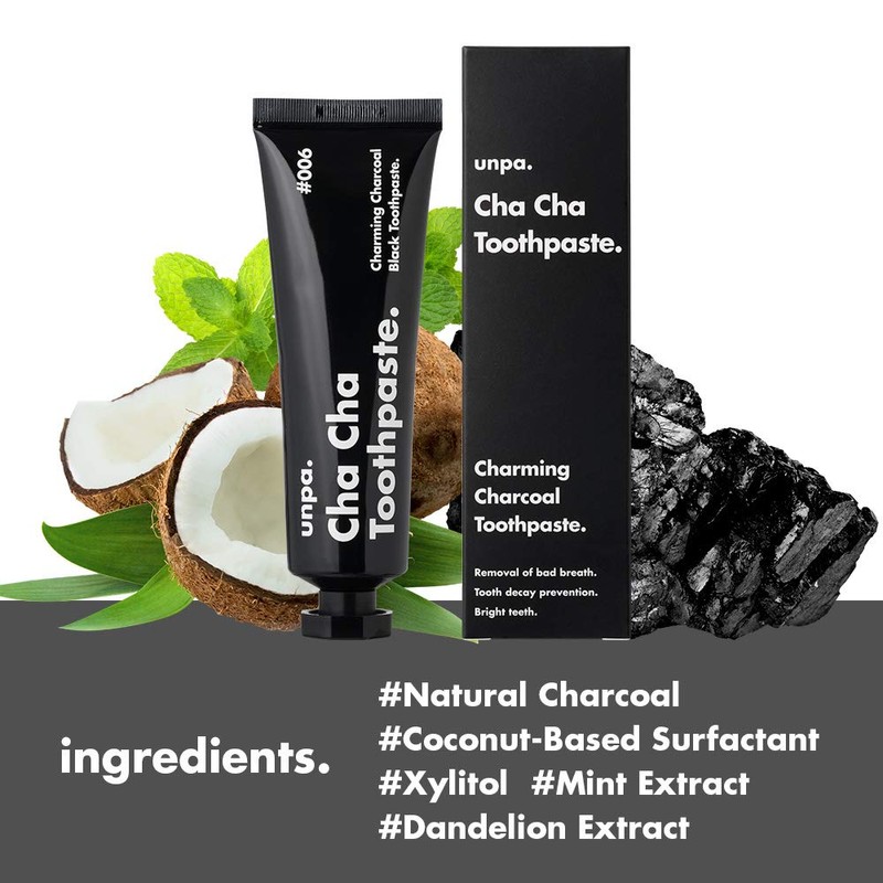 [unpa.] Cha Cha Toothpaste : All-Natural Organic Charcoal Teeth Strengthening Toothpaste for Minty Fresh Breath, 100g